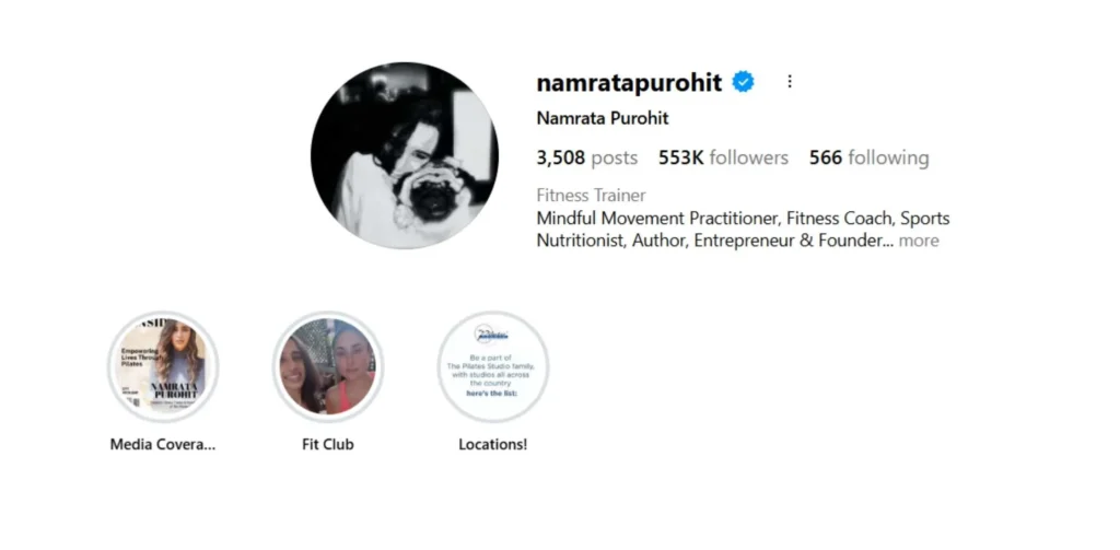 Namrata Purohit is a fitness coach, sports nutritionist, author, and entrepreneur who is a certified fitness coach and the founder of The Pilates Studio Mumbai. She encourages conscious movement and whole body fitness, based on physical, mental and environmental health. Her experience in training and her background as an equestrian add different insights to the world of fitness, which makes her an attractive trainer to celebrities.