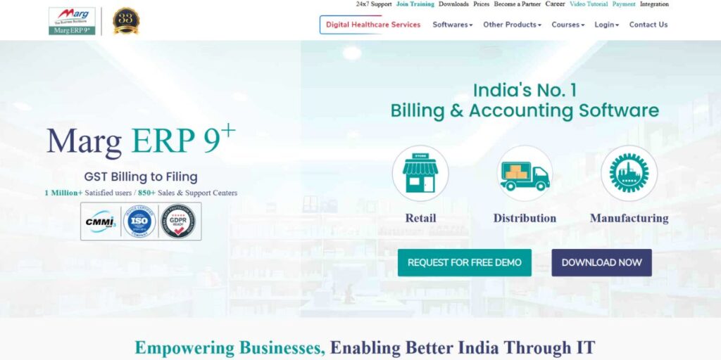 | Marg ERP | Industry-specific, retail/distribution | No | ₹5,400/year | Retailers, distributors | 4.1/5 |